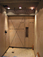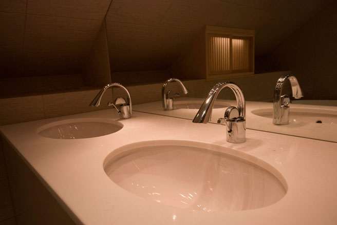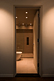 Marble top w/double undercounter sinks. Japanese style storage cabinet with sliding doors and interior light